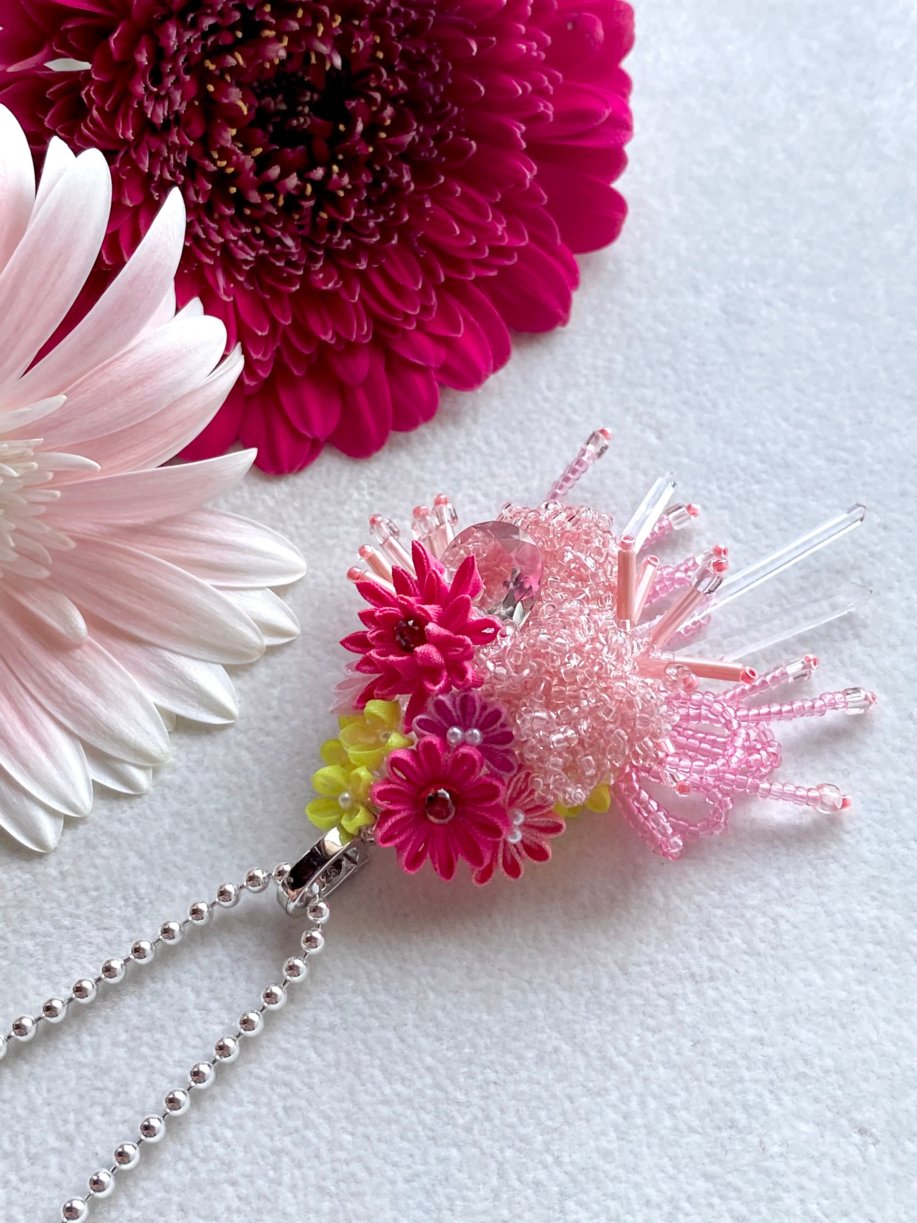 2025年 アドベント企画作品 【12月24日】白にかえる時 たくさん作ってきた中で、 ふと立ち止まる瞬間がありました。 色や形を重ねていくうちに、 最後に心に残ったのが「白」。 飾りすぎず、 今の気持ちをそっと映した 静かな存在感のネックレスです。 可憐さの奥に、凛とした芯を感じる花。 アドベントの終わりに届けたい、 今のkumakumaoの「白」です。 本作品は kumakumao アドベント企画として、 12月1日〜24日まで毎日ご紹介している作品のひとつです。 12月25日 21:00より、BASEショップにて一斉販売いたします。 ⸻ ■ カラー/サイズ ・カラー:白 ・サイズ:全体サイズ 約60×30mm チェーンの長さ45cm+7cmアジャスター ⸻ ■ 素材 ・つまみ細工(絹布) ・アクリル樹脂 ・ダブルポイントクリスタル ・レムリアンシードクリスタル ・淡水パール ・貴和クリスタル(スワロフスキー社製) ・メタルパーツ(合金) ・ビーズ ・シルバーチェーンsilver925(チェーンのみ) (製造国:日本) ⸻ ■ ご購入前に ※すべて手作業で制作しているため、色味や形に個体差がございます。 ※写真と実物で若干色味が異なる場合がございます。 ※水濡れや強い衝撃はお避けください。 ※天然石は内包物やクラックがあるものを、パールはくぼみや縞のあるものを使用しております。 ⸻ ■ 発送について ・ご注文から発送まで、約1週間から10日ほど日にちをいただきます。 ・年末年始を挟む場合、配送状況によりお届けまでお日にちを要することがございます。
