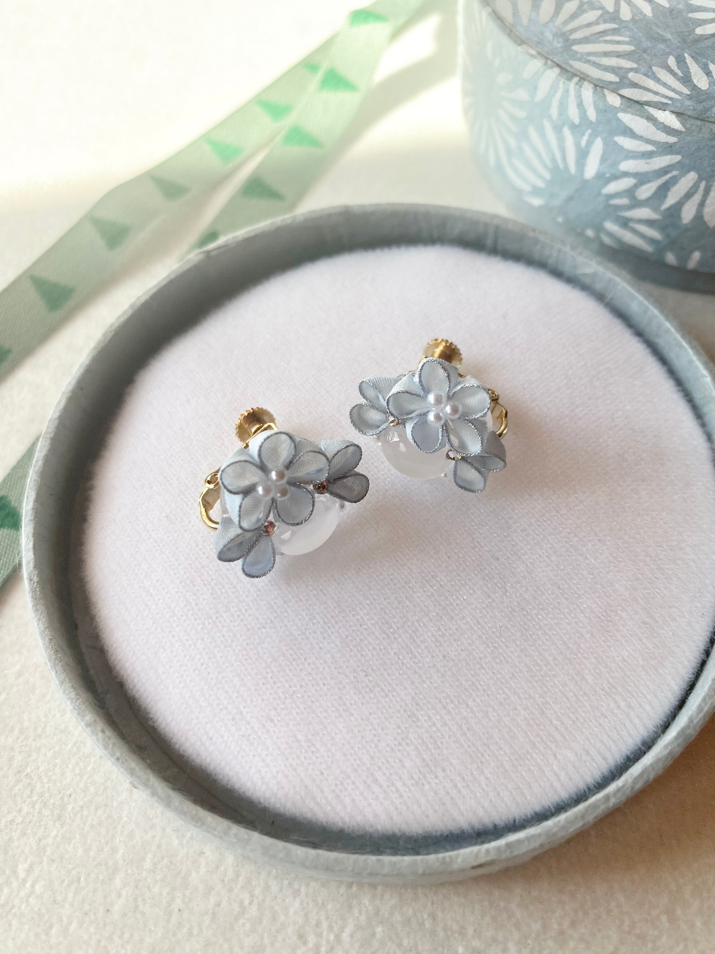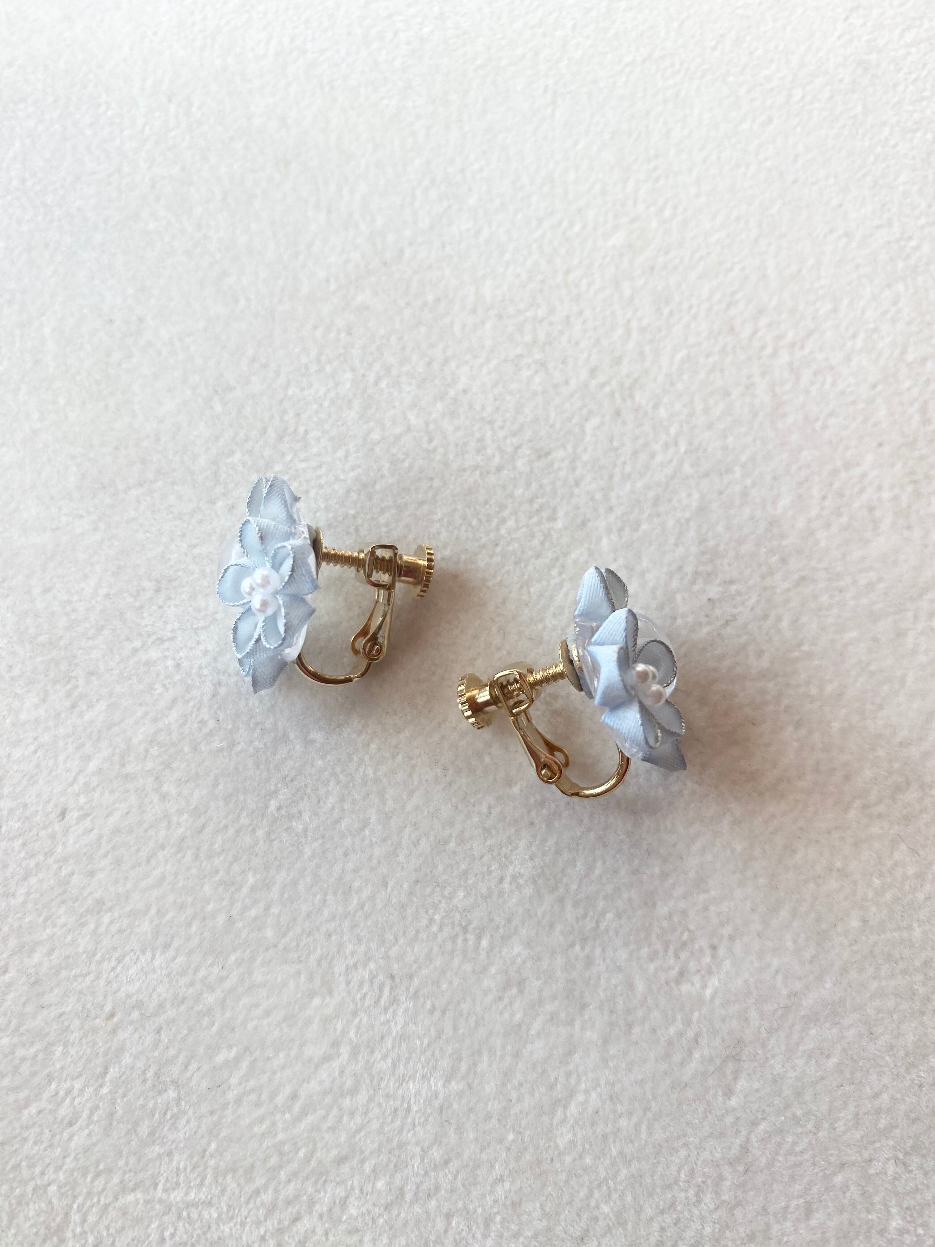 ブルームーンストーンと水色のお花のイヤーアクセサリー