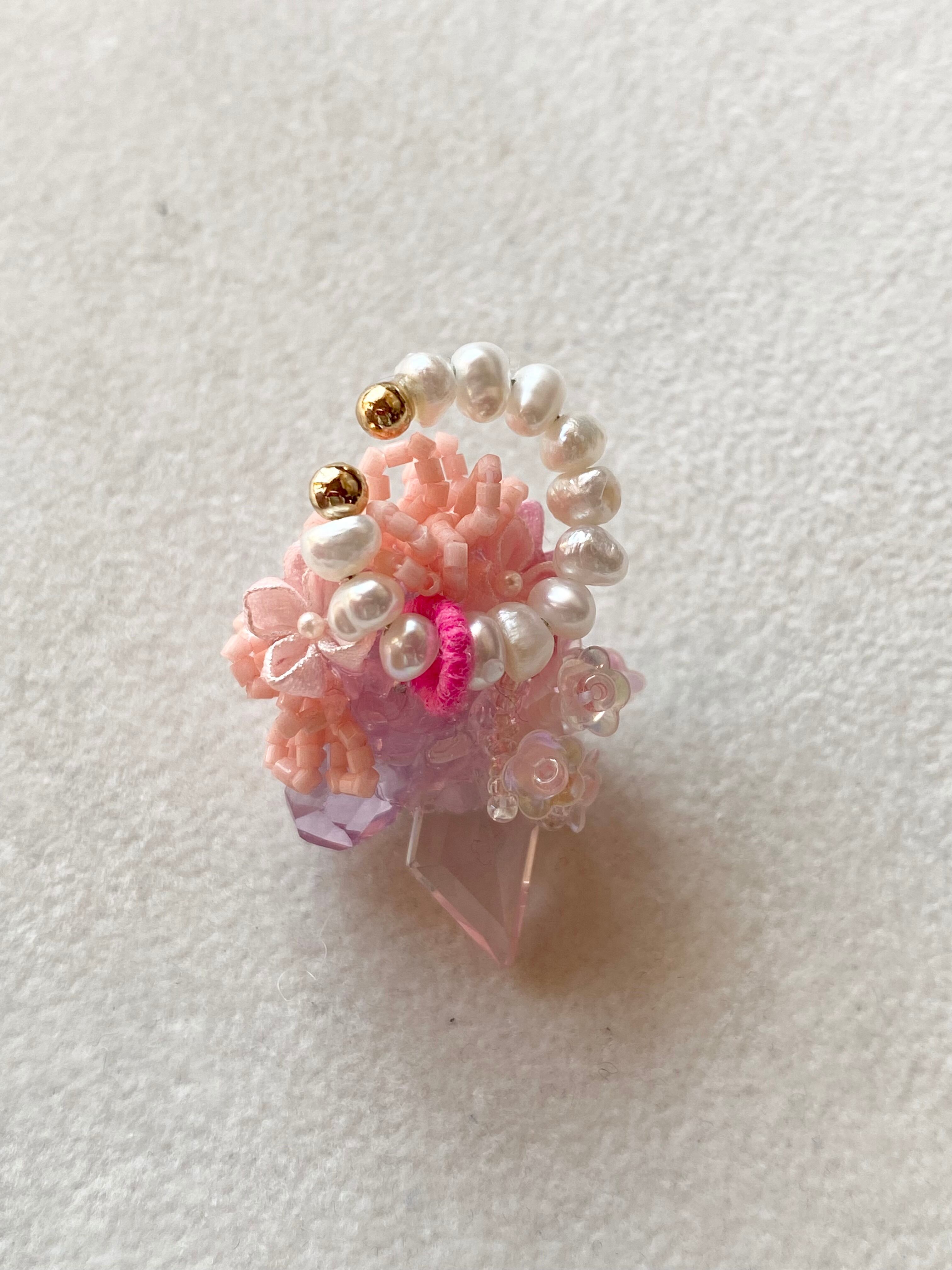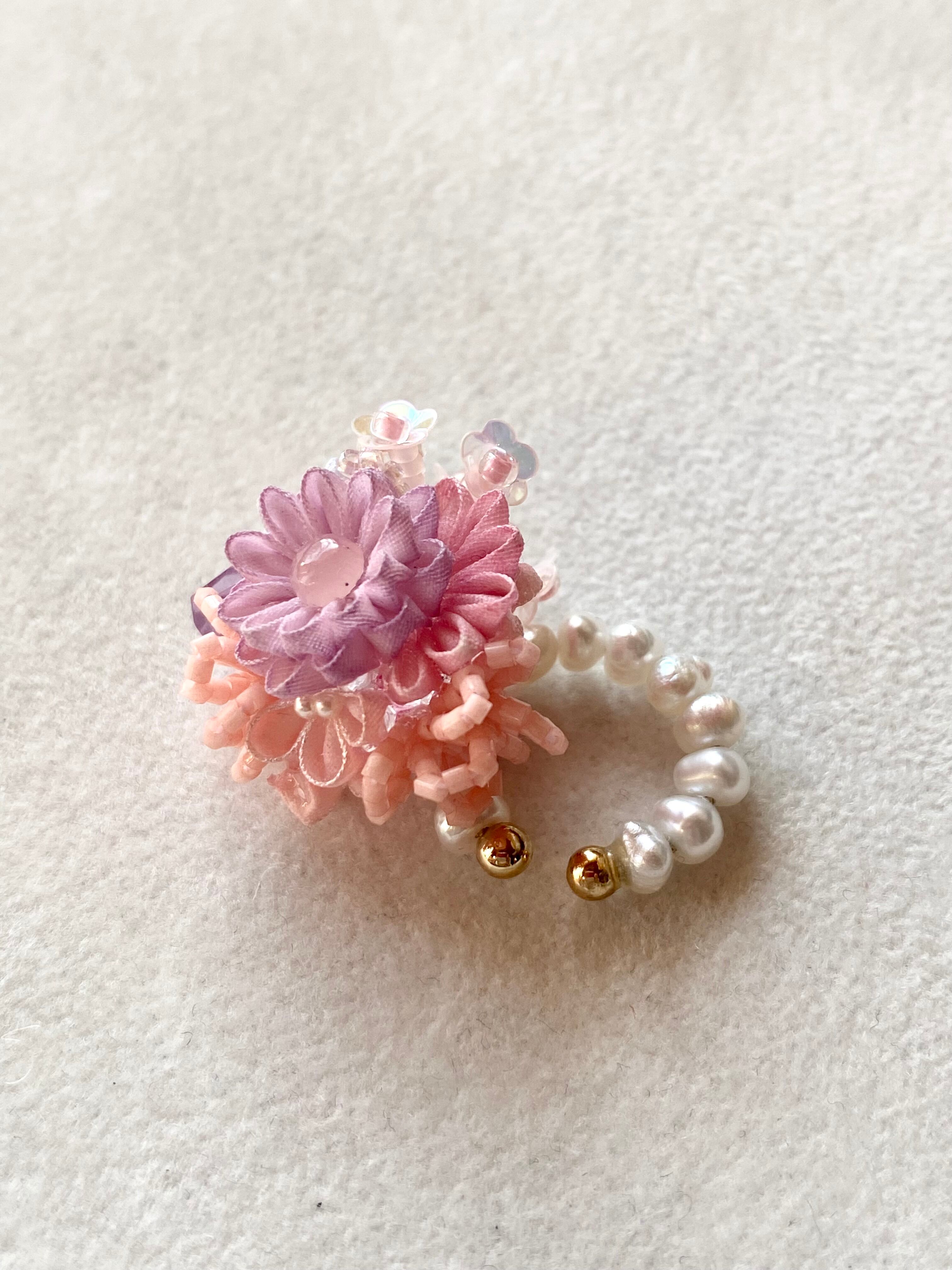 【12月17日】ピンクの花束イヤーカフ
